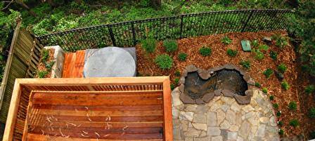 As a landscape designer, I proposed an innovative design for the backyard renovation near UCSF that seamlessly integrates the surrounding parkland and incorporates silver quartzite flagstone, a goldfish pond, a stone planter, a hot tub, plumbing, lighting, and irrigation.
