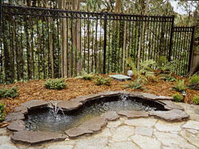 A serene goldfish pond was nestled within this greenery, complete with a stone planter housing aquatic plants to enhance the pond’s ecosystem. A small waterfall feature added a sense of tranquility and improve water circulation for the fish.